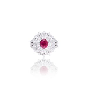 紅寶石(Ruby)的顏色代表著永不熄滅的火焰,為剛玉(Corundum)家族的品種之一,成分為三氧化二鋁,剛玉顏色的產生源自於不同的致色元素,達到寶石級的紅寶石由鉻元素致色,紅寶石的濃豔程度取決於鉻元素含量的多寡,因此鉻含量越高,紅寶石的顏色就越豔麗。相反的,如果紅寶石當中含有鐵元素會導致其體色較暗,外觀上較不討喜。最頂級紅寶石的顏色應達中至中深色調的正紅色,通常帶有紫色或橙色等副色,主色為紅色才可評判為紅寶石,太紫或太橙皆會影響紅寶石的價值,最頂級的紅寶石顏色會以商業名稱「鴿血紅Pigeon's Blood」稱之。 |
