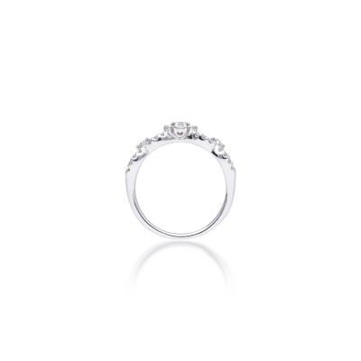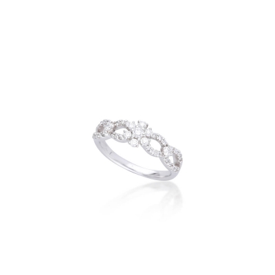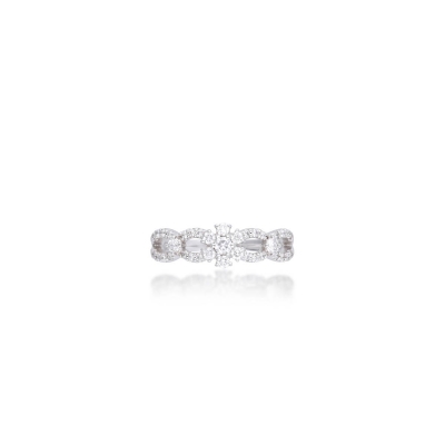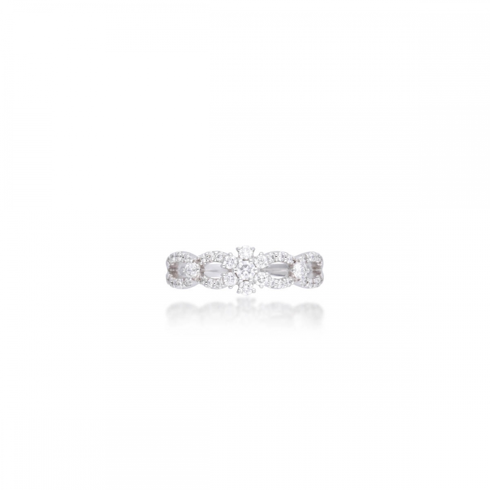 戒指設計如交織花環,線條柔美流動。以18K金製作,工藝精緻舒適。全戒鑲嵌 37 顆小鑽,共 0.36 克拉,分布均勻,光芒明亮而飽滿。佩戴後指間閃耀如星河,既華麗又不失優雅。