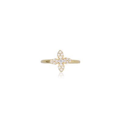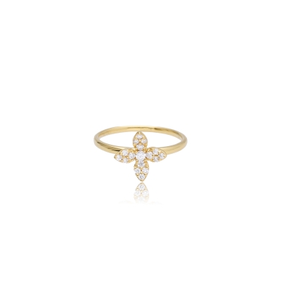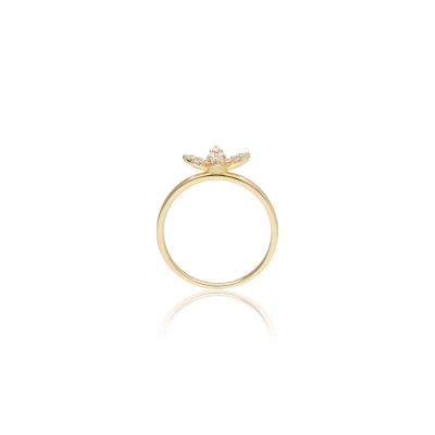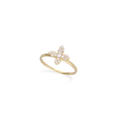 戒指以葉片造型為主題,線條自然生動,充滿生命力。戒身選用18K金,色澤柔和典雅。共鑲嵌 17 顆鑽石,總重 0.19 克拉,細鑽分布於葉脈般的結構上,閃爍如晨露。造型靈巧,佩戴後給人輕盈、浪漫的印象。