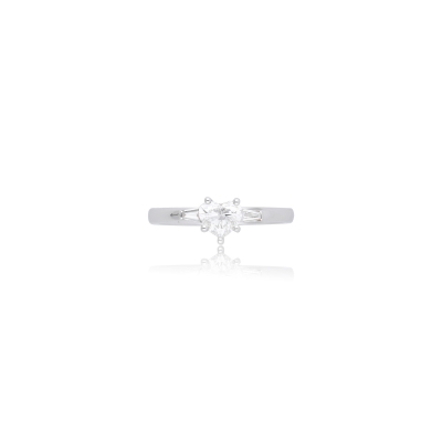 戒指以經典單鑽造型為主,搭配心形切割的主石,重量 0.50 克拉,成色 F、淨度 VS1,火彩璀璨。另鑲嵌 2 顆小鑽共 0.07 克拉,提升光澤感。材質為18K金,整體精緻而純淨。戒指附有 GIA 證書,保證真實與品質。簡潔的設計使其成為訂婚、紀念日或珍藏的理想選擇。