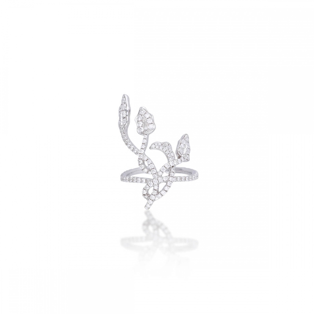 此款戒指設計理念源於刺青中的花卉圖騰,象徵綻放與重生。使用118小鑽共 0.87克拉,18K金材質勾勒出乾淨輪廓,猶如在指間刻下柔美卻堅韌的紋樣。此款作品兼具浪漫與力量感,是刺青精神在珠寶中的延伸,極具收藏意義。