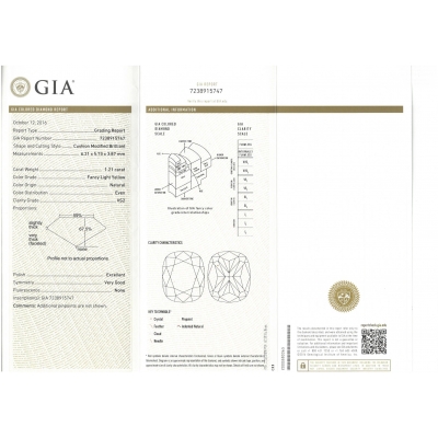1.02克拉枕形黃鑽裸石 Fancy Intense Yellow - GIA