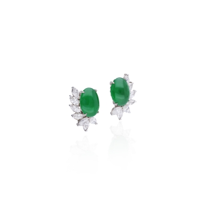 翡翠作為華人最具代表性的綠色寶石,不管是其溫潤優雅的氣質,有別於其他寶石的璀璨,其內斂的風格更能凸顯出女性的優雅,從古至今每一塊原石都是天地的寶貴賜予。就切割寶石來角度來說,翡翠蛋面是集所有整個翡翠原石中,最精華的地方,也就是正濃陽勻兼備才會考慮取出蛋面做為切磨的形式,此款蛋面耳環以經典的滿綠色翡翠為主體,更難得的是此翡翠戒指的主石顏色非常飽滿濃郁的滿綠外,翡翠玉質溫潤瑩透,璀璨的水滴鑽石輔以圍繞,充分展現華人女性特有的婉約氣質,光華更盛,是雅致品味的表達,推薦給您。