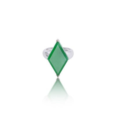 翡翠作為華人最具代表性的綠色寶石,不管是其溫潤優雅的氣質,有別於其他寶石的璀璨,其內斂的風格更能凸顯出女性的優雅,從古至今每一塊原石都是天地的寶貴賜予。就切割寶石來角度來說,翡翠基本上都是磨成凸圓面的型態,因為翡翠很難能夠有通透的質地,此款戒指以經典的正陽綠色翡翠為主體,更難得的是此翡翠戒指的主石是顏色非常飽滿濃郁的刻面滿綠菱形的造型玉版,翡翠玉質溫潤瑩透,充分展現翡翠特有的氣質,推薦給您。