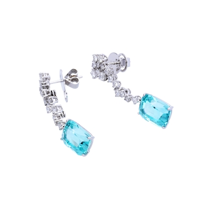 此款碧璽耳環有著和帕拉伊巴(Paraiba)接近的藍綠色調,搭配點點繁星般的鑽石,宛若流星劃過天際,不容忽視的絢麗光彩,讓您不論身在何處皆是萬眾矚目的焦點。
