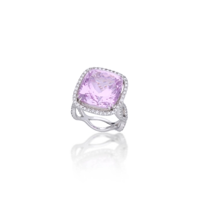 孔賽石又名紫鋰輝石,是鋰輝石家族的一種變種,因含錳元素的致色元素而呈粉紫色。國際精品TIFFANY是孔賽石從被發現到走入大眾眼裡的一大推手。將時光推回到20世紀初,熱愛寶石的寶石學家George Frederick Kunz在加州發現一款新的紫粉色寶石,而後這款紫粉色寶石就以Kunz為命名。孔賽石被發現後,TIFFANY也也將入帶入自家的珠寶創作之中,與丹泉石、沙弗萊石、摩根石並稱TIFFANY的四大寶石。