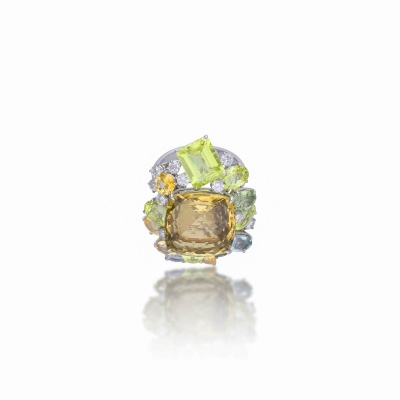 金綠寶石(Chrysoberyl)成分為鈹鋁氧化物,硬度8.5,一般都是帶著淡淡的金黃色、黃綠色或褐黃色,折射率跟硬度都非常高,是一種十分適合每天配戴的一種彩色寶石。近期寶石市場颳起了療癒色系的風潮,也讓金綠玉寶石獨特的黃綠-藍綠色系廣受歡迎; 此金綠玉貓眼戒指設計的十分繽紛多彩,匠心獨具,做為五大彩寶之一,也都是各大拍賣會每次拍賣不可或缺的焦點,也屢屢創下高價,此戒指是您購入金綠玉的最佳選擇。