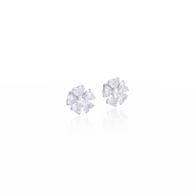 鑽石耳環向來是女性為整體造型增添畫龍點睛效果的珠寶,能塑造出上下伸展的效果,修飾著臉部線條,隨著你的一舉一動搖曳生姿。此款耳環以愛心鑽石堆疊出幸運草的造型,以簡潔線條營造出俐落的美感,前衛而優雅,是經典設計的現代演釋。流暢線條的環圈相互交織,在耳際邊搖曳擺動,輝映出女人萬種美麗姿態,更能為整體造型帶來小小華麗感,而簡單設計更顯出鑽石光采。