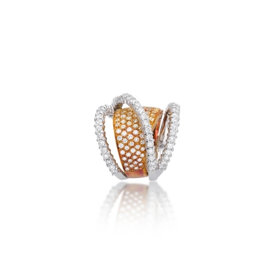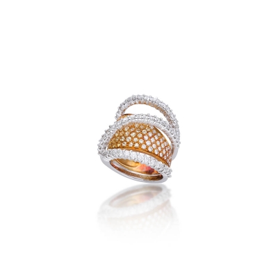 此件作品透過那些晶瑩透亮的白色鑽石靜靜地鑲嵌為弧度線條,猶如天上墜落的星辰,底部則是滿鑲的黃寶石呈現作品細膩而完美,令人難以抗拒,推薦給有品味的您。