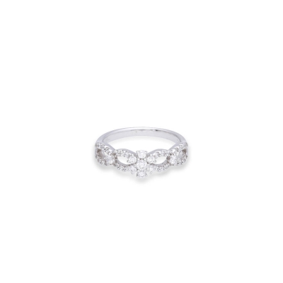 戒指設計如交織花環,線條柔美流動。以18K金製作,工藝精緻舒適。全戒鑲嵌 37 顆小鑽,共 0.36 克拉,分布均勻,光芒明亮而飽滿。佩戴後指間閃耀如星河,既華麗又不失優雅。