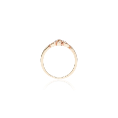 這枚戒指以細緻繩結的元素為靈感,造型精巧浪漫。以18K金打造,溫潤的色澤帶來柔和氛圍。共鑲嵌18 顆小鑽,總重 0.06 克拉,低調卻充滿光澤感。佩戴起來優雅又不張揚,適合日常或特別場合的柔美搭配。