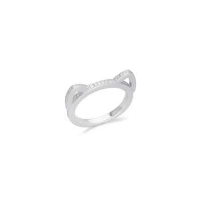 戒指以俏皮的貓耳朵為設計靈感,戒環頂端微微翹起,呈現對稱耳尖造型,簡約中帶有靈動感。材質為 18K金,質地光亮,戒身鑲嵌 54 顆鑽石,總重 0.32 克拉,均勻密鑲的排列讓貓耳造型更為立體,這款作品兼具趣味與時尚,適合日常佩戴,也能展現個人風格,特別受到喜愛動物或追求獨特造型者的青睞。