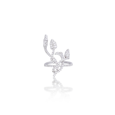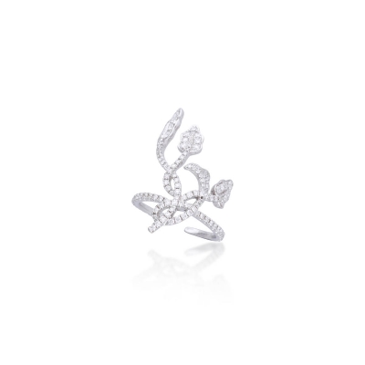 此款戒指設計理念源於刺青中的花卉圖騰,象徵綻放與重生。使用118小鑽共 0.87克拉,18K金材質勾勒出乾淨輪廓,猶如在指間刻下柔美卻堅韌的紋樣。此款作品兼具浪漫與力量感,是刺青精神在珠寶中的延伸,極具收藏意義。