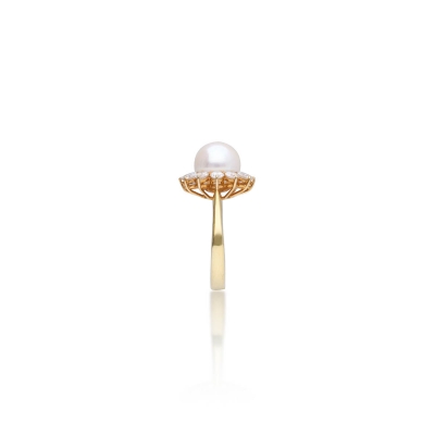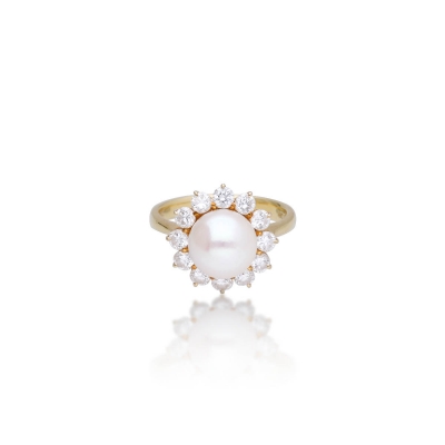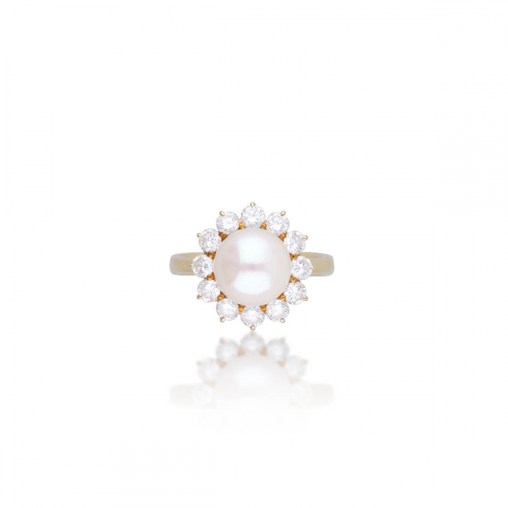 這款 11mm 天然珍珠戒指 以飽滿圓潤的珍珠為核心,散發溫潤柔和的光澤,極具優雅氣質。珍珠周圍環繞一圈精緻小鑽石,閃爍光芒如星辰般點綴,完美提升戒指的奢華感與層次感。戒指精緻而不張揚,既能展現佩戴者的獨特品味,也適合作為禮贈珍藏之選。