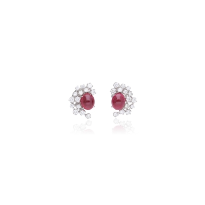 此紅寶耳環以濃豔的蛋面紅寶搭配撲滿白鑽的璀璨,鑽石與紅寶石的精緻切工,特殊的滿鑲風格讓整體更為大方優雅;為耳環打造出瑰麗奢華的質感,滿讓鑽石與紅寶石奢華不落俗套,色澤濃郁的紅寶石也能因為這個戒檯更顯得濃郁鮮豔完全散發獨特色彩與光芒,推薦給您。