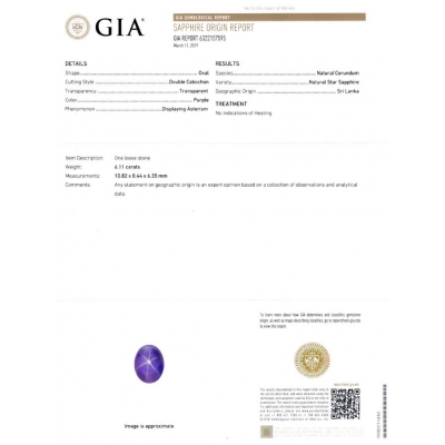 6.11克拉 紫色藍寶星石戒指 Star Sapphire Ring – GIA